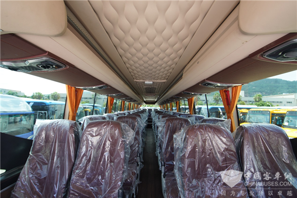 此次交付科特迪瓦的20台领航者车型,采用2+2座椅布局,选用豪华款内饰。拥有优秀的NVH静音效果,全车配有USB接口,整车WIFI全覆盖,乘客座椅采用运用人体工程学设计的零压座椅,软硬适中,将给乘客更好的旅途体验,让长途旅行也充满惬意。
