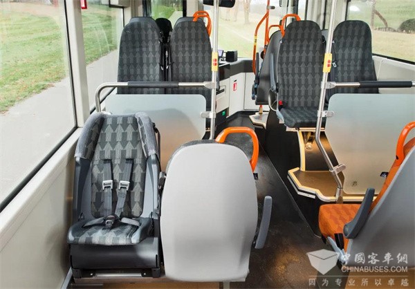 本次交付涵盖比亚迪旗下多款全新车型,其中包括了将作为城际大巴运营的15米纯电动巴士。这款车型采用全通道低地板设计,最大载客量达90人,单次充电后综合工况续航达400公里。车内座椅自带氛围灯,座椅下方设有USB充电口。除常规座椅外,车内还配备两个儿童安全座椅。