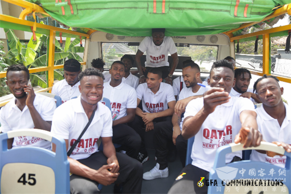比赛结束后,加纳总统Akufu Addo接见了国家队全体成员。全程负责本次运送任务的是苏州金龙海格双层公交KLQ6119GS。辅以加纳国旗涂装的海格客车与载誉而归的球员们一起见证了这一荣耀时刻。