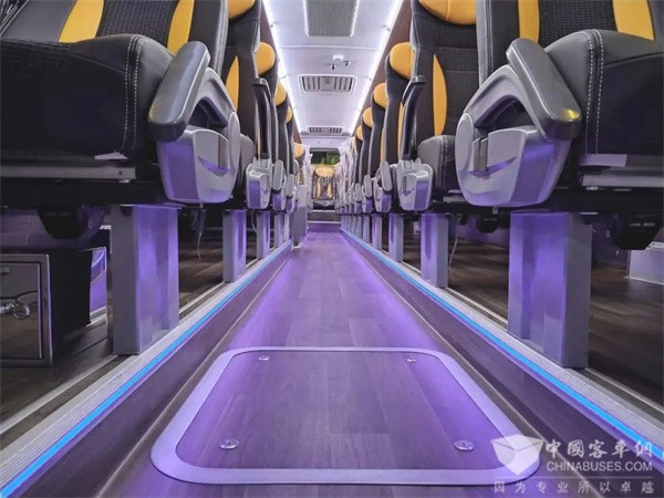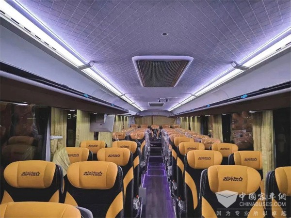 值得一提的是,此批车还有10辆专用于皇室Royal Family服务的用车,运用了宇通定制商务座椅YTH07,大顶菱形格栅内饰,时尚感十足,进一步实现沙特公共出行的改善升级。