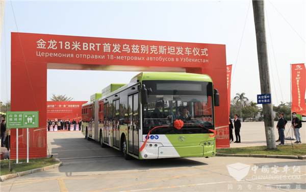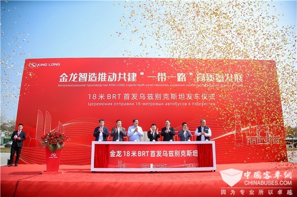 2023年1月,乌兹别克斯坦交通部部长马哈莫夫带队来中国考察客车制造厂商。出于对金龙客车长期以来的信赖,代表团一行专程到金龙客车参观考察。考察过程中,代表团对金龙客车的创新理念、科学技术、产品品质、流程管理等给予一致高度评价,并对金龙客车在厦门BRT交通系统中的产品、运营及售后支持印象深刻,最终将200辆18米BRT公交车订单交给金龙客车,再续双方合作新篇章。