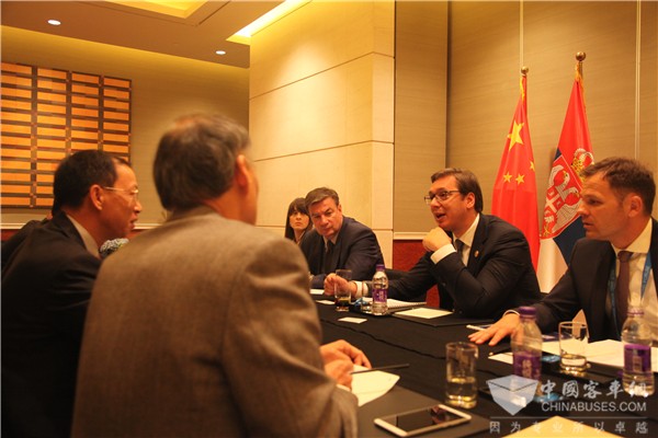 2015年,第四次中国-中东欧国家领导人会晤期间,时任塞尔维亚总理武契奇(注:现任塞尔维亚总统)就到访苏州金龙海格客车厂区参观。