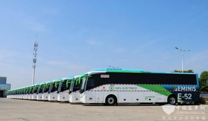 2024年4月,35辆中通18米BRT纯电动客车正式交付葡萄牙用户,全部运营在葡萄牙历史名城科英布拉市,成为连接该地主城区和郊区的重要交通纽带;同月,中通H11旅游客车批量出口哥伦比亚,为全球旅游客运出行贡献“中国智慧”。