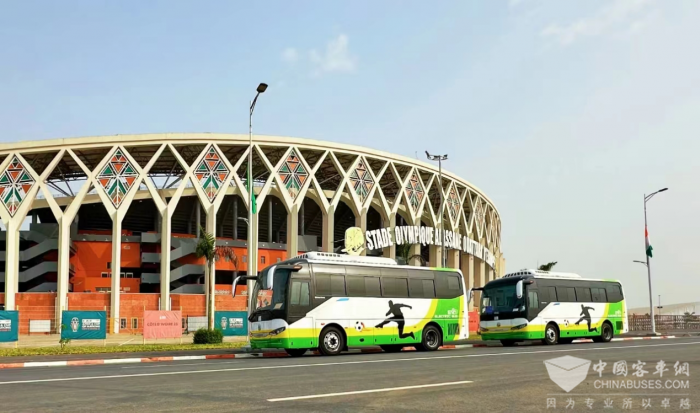 2024年2月,第34届“非洲杯”期间,赛场外由中通纯电动旅团客车组成的服务车队,是本届赛事唯一的新能源客车车队,同时也是科特迪瓦全国范围内首次引进的纯电动客车。