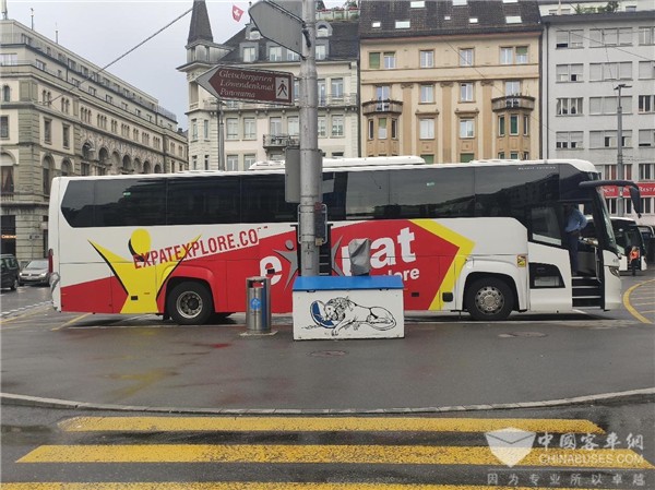 在瑞士卢塞恩步行前往著名的狮子雕像的路上,威武的身形、伶俐的线条、锐利的“鹰眼”,是的没错,那是一辆苏州金龙生产的斯堪尼亚·海格统领(Touring)客车。在异国他乡见到中国车非常激动,我赶紧向同行的伙伴们介绍这是中国制造的客车,大家都流露出赞叹的表情。与此同时我掏出手机抓紧纪录,遗憾的是由于是跟随团队前行,不能停下仔细拍照。