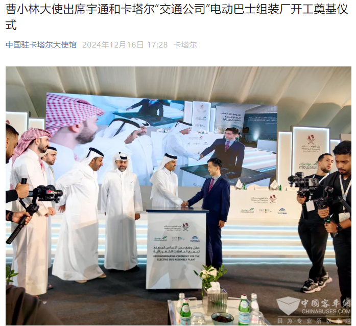 中国新能源商用车正从简单的“走出去”向更深层次、更高境界的全球化发展加速迈进!当地时间2024年12月15日,宇通与卡塔尔国家运输公司Mowasalat合作的新能源商用车工厂在卡塔尔乌姆阿尔霍尔自由区正式开工奠基。这是卡塔尔第一家电动商用车组装厂,也是宇通在海外市场的首个新能源商用车工厂。该工厂的顺利动工,不仅标志着宇通在国际市场迎来又一重大里程碑,也是共建“一带一路”倡议下中卡两国深化合作的重要实践。