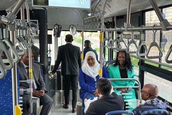 本次交付的100辆12米纯电动公交车以KD散件形式在埃塞本地组装,搭载宁德时代磷酸铁锂电池及中国标准充电设施,完美适配埃塞电网标准。亚的斯亚贝巴市长阿达内彻·阿贝贝(Adanech Abebe)在仪式上指出,交通发展始终是市政建设的重中之重。“这些电动公交不仅将缓解市民出行压力,更是我们践行绿色发展的具体行动。”她特别提到,半年前投放的150辆金旅纯电动轻型车已累计减少碳排放1.2万吨,相当于种植了6万棵成年树木。这也证明金旅客车三电系统已通过亚的斯亚贝巴复杂路况与气候的严格考验,验证了其可靠性。