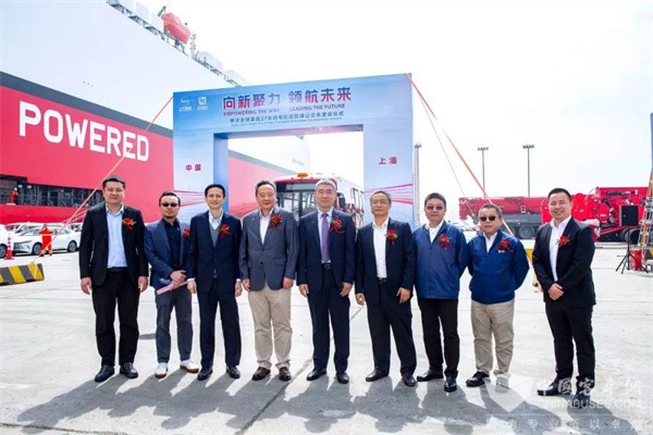 在各位领导精彩的致辞之后,活动进入了最为激动人心的环节——车辆发运启动仪式。随着启动杆向下推动,申沃全球首款27米纯电动双铰接公交车缓缓驶向运输船只,现场响起了热烈的掌声和欢呼声。随着全球公共交通行业的绿色化、智能化发展,新能源客车市场势必将迎来更加广阔的发展空间。申沃客车也将继续坚持创新驱动,不断提升产品和服务,满足全球客户的多样化需求。同时,申沃客车也将继续在上汽集团的统筹部署和全力支持下,持续深化与上汽国际以及上汽商用车国际在海外出口市场的合作,共同推动上汽大客车的扬帆出海。