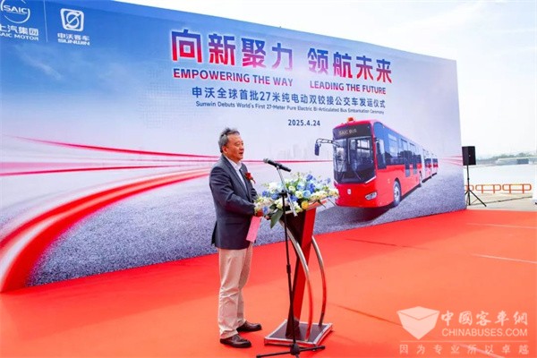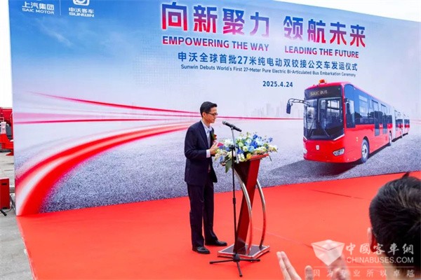 上汽集团国际业务事业部总经理助理郑浩在致辞中指出:此次发运墨西哥的27米纯电动双铰接公交车,是申沃客车在技术层面的重大突破,也是上汽集团践行“全球战略车型、全球协同创新”理念的重要里程碑,更是国际业务事业部对南美市场长期承诺的兑现。申沃客车凭借过硬的产品实力与系统解决方案能力,这批车辆将为墨西哥及南美其他城市的公共交通带来全新体验,助力当地实现绿色交通转型。