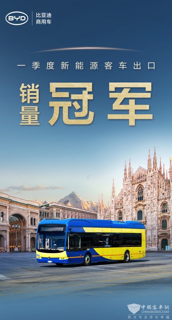 同比增长超55% 比亚迪获2025年一季度新能源客车出口销量冠军!