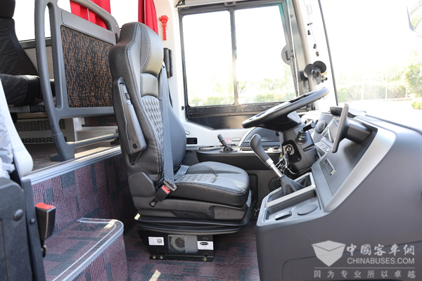 长途驾车少不了一个包裹感满满的座椅,符合人机工程学的气囊减震座椅,支持阻尼调节、高度调节、一键充放气、腰部支撑等功能,一体式的安全带也能完美符合每一位驾驶员的体型。
