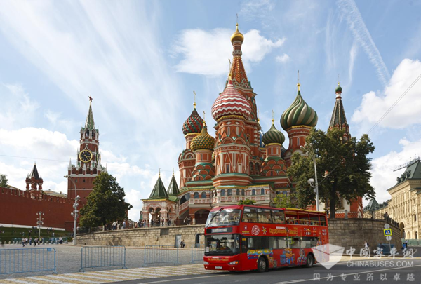 行驶在莫斯科红场的海格双层巴士