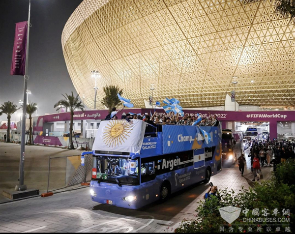 卡塔尔世界杯阿根廷夺冠后乘坐海格双层巴士巡游