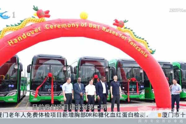 2025年7月17日下午,来自坦桑尼亚的客户代表及政府官员在厦门完成200台18米BRT公交车的首批交付验收。这批车辆由金旅客车专为当地快速公交项目定制,也成为2025年我国出口非洲数量最大的一批BRT公交车。
