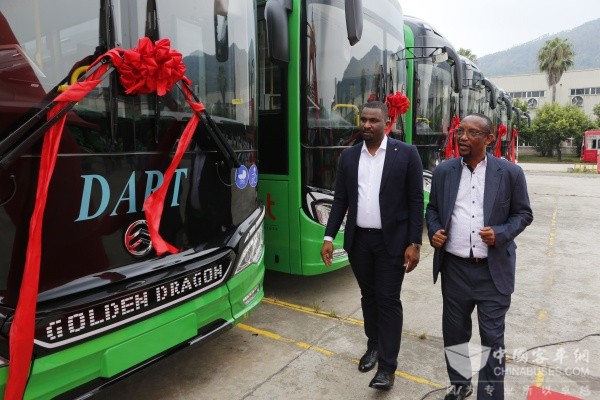 据悉,这批总计200辆的金旅18米公交车首批车辆预计在8月中旬抵达坦桑尼亚,并将在9月正式投入DART二期线路使用。作为当地交通领域的重要民生工程,该项目受到当地政府的高度重视,此次交车,坦桑尼亚DART(快速公交)项目首席执行官基哈米亚·阿图马尼·朱马也专程来到厦门,现场见证了首批车辆的交付,“达累斯萨拉姆有600万人口,BRT极大提升了居民的出行效率。金旅客车作为车辆供应商,生产的车辆非常适合坦桑尼亚使用。”