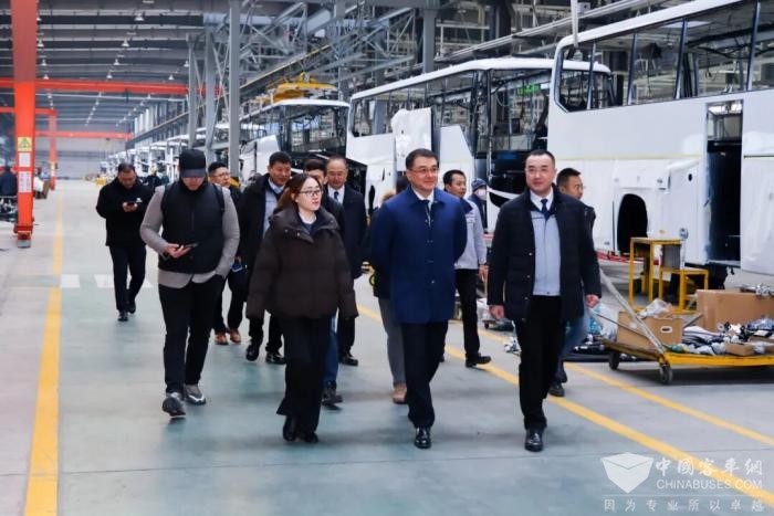 2025年12月9日,TMD LLP集团董事长 Marat Yessimseitov 先生一行到访曙光汽车集团洽谈交流。曙光汽车集团总裁李全栋携公司相关业务负责人接待了代表团一行。代表团一行参观了曙光汽车集团商用车生产基地和企业文化展示厅,通过实地观摩与交流,全面了解了公司各系列产品的卓越性能、精湛制造工艺及创新研发实力。