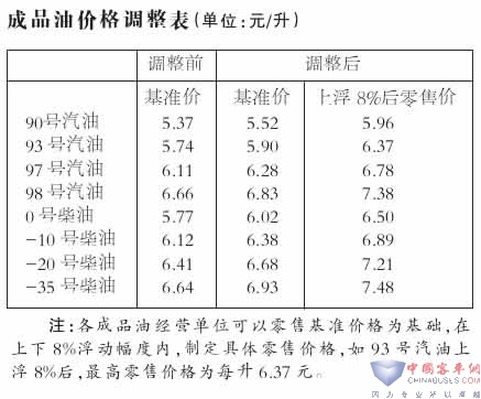 昨晚(10月6日),业内人士称,此次调价是为了补偿生产欧Ⅳ标准汽、柴油增加成本。