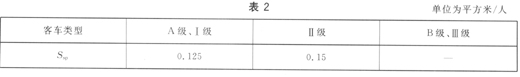 每位站立乘客所占的有效面积Ssp按表2计算。