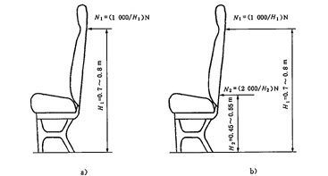 b) 紧邻接其后的座椅的H点应与该座椅H点的高度差不大于72mm;如果大于72mm,应对该安装位置的座椅进行试验。