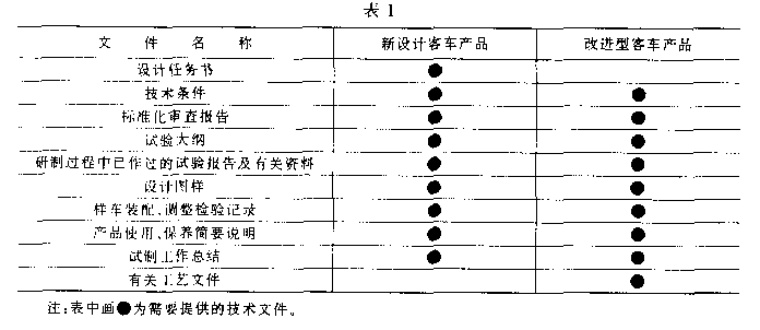 3.3 在客车新产品定型试验之前应提供表1所列技术文件。