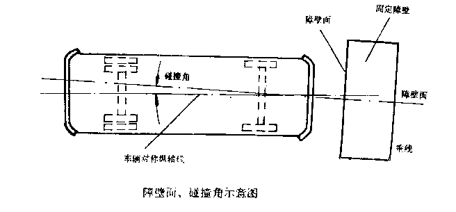 2.2 碰撞角:障壁面垂线和试验车辆对称纵向轴线间的水平夹角。