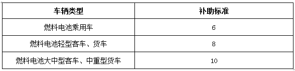 四、燃料电池汽车推广应用补助标准(单位:万元/辆)