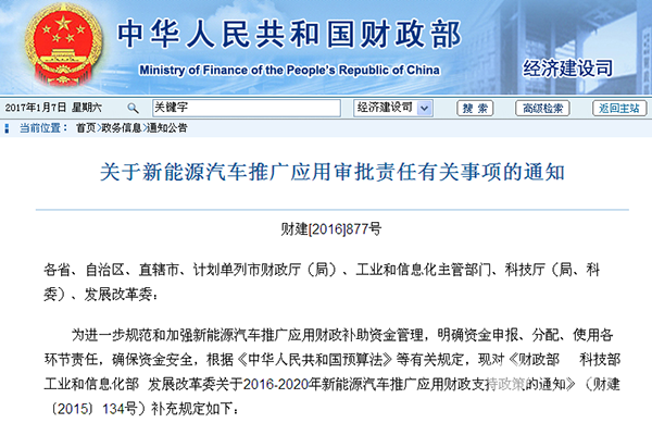 为进一步规范和加强新能源汽车推广应用财政补助资金管理,明确资金申报、分配、使用各环节责任,确保资金安全,根据《中华人民共和国预算法》等有关规定,现对《财政部 科技部 工业和信息化部 发展改革委关于2016-2020年新能源汽车推广应用财政支持政策的通知》(财建〔2015〕134号)补充规定如下: