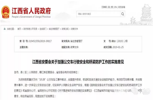 生怕公交坠江再现,江西省连续出台了一系列防护措施加强公交车行驶安全