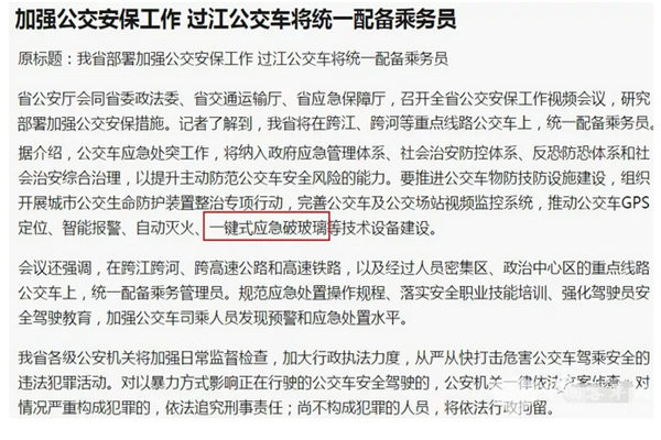 城市公交车辆安防新要求实施,各地公交陆续加装自动破玻器