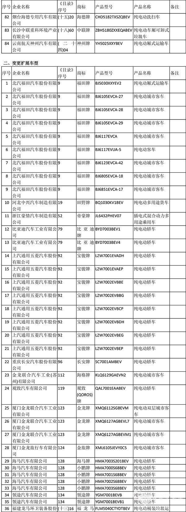 2019年3月8日,工信部发布第317批《道路机动车辆生产企业及产品公告》,同时,本批公告中发布了《新能源汽车推广应用推荐车型目录(2019年第2批)》,共包括37户企业的84个车型,其中纯电动产品共36户企业83个型号、插电式混合动力产品共1户企业1个型号。