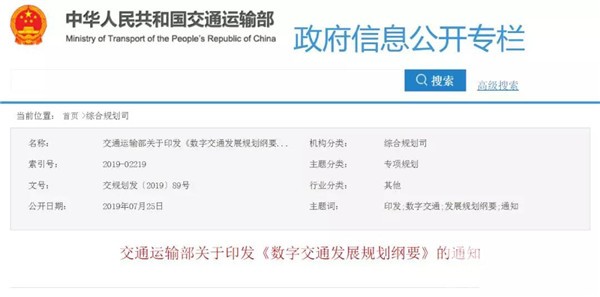 交通运输部关于印发《数字交通发展规划纲要》的通知