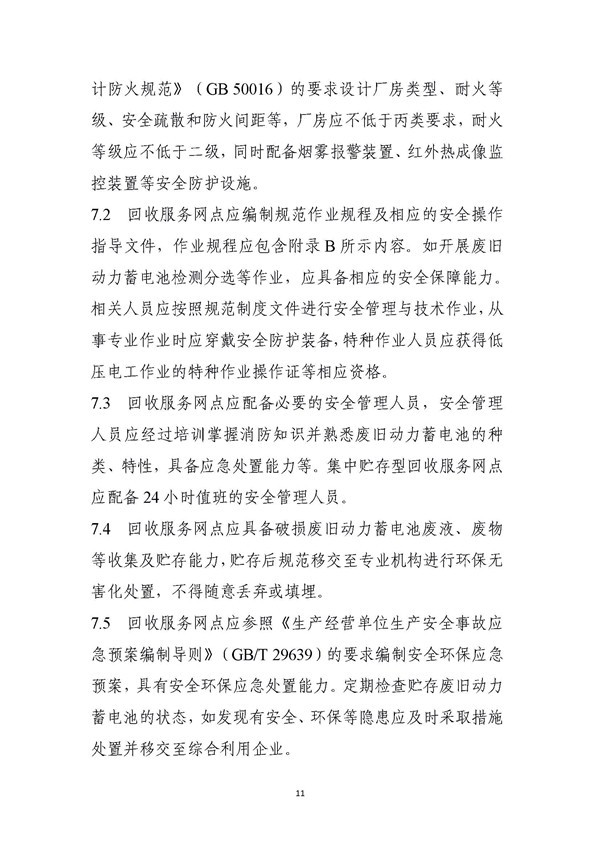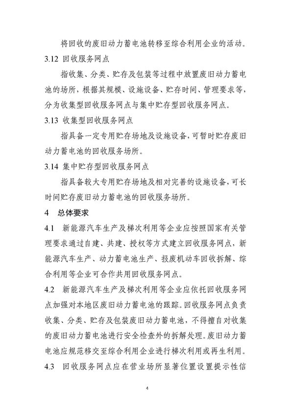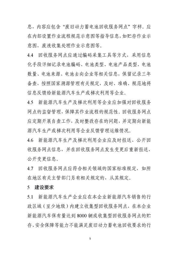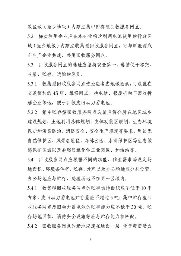 为推动新能源汽车动力蓄电池回收利用,引导和规范动力蓄电池回收服务网点建设运营,近日,国家工业和信息化部制定并发布了《新能源汽车动力蓄电池回收服务网点建设和运营指南》,要求新能源汽车生产及梯次利用等企业应按照国家有关管理要求通过自建、共建、授权等方式建立回收服务网点,新能源汽车生产、动力蓄电池生产、报废机动车回收拆解、综合利用等企业可合作共用回收服务网点。新能源汽车生产企业应在本企业新能源汽车销售的行政区域(至少地级)内建立收集型回收服务网点,在本企业新能源汽车保有量达到8000辆或收集型回收服务网点的贮存、安全保障等能力不能满足废旧动力蓄电池回收要求的行政区域(至少地级)内建立集中贮存型回收服务网点。