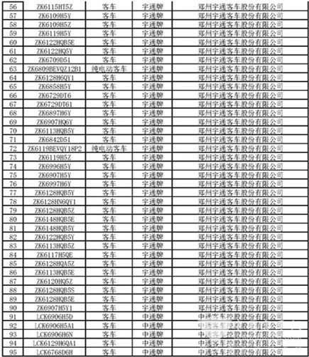 上榜的95款车型中:宇通客车上榜39款为数量最多,其次海格客车上榜17款,金旅客车上榜7款,中通客车上榜5款,安凯客车、金龙客车、申龙客车分别各上榜4款,福田欧辉客车和东风客车分别各上榜3款,江淮客车、亚星客车分别各上榜2款,北方客车、吉利客车、广通客车、依维柯客车、建康客车分别各上榜1款。