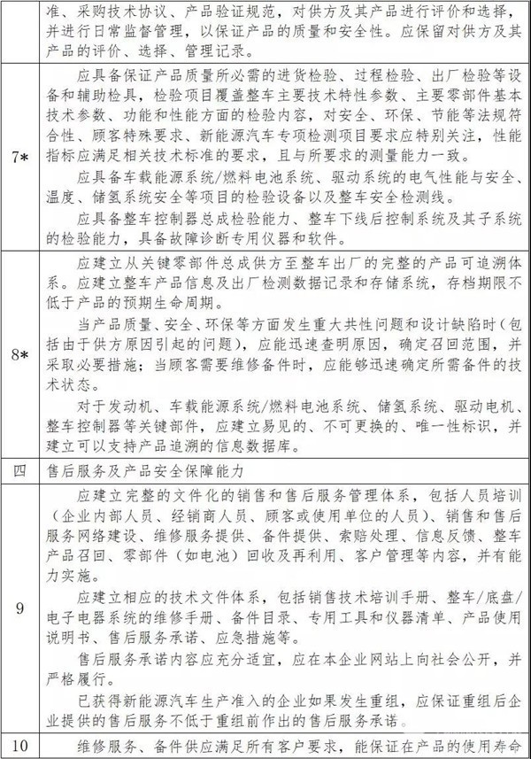 一、将第五条第三款修改为:“(三)具备生产新能源汽车产品所必需的技术保障能力、生产能力、产品生产一致性保证能力、售后服务及产品安全保障能力,符合《新能源汽车生产企业准入审查要求》(见附件1,以下简称《准入审查要求》)。