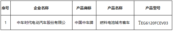 符合2018产品技术要求的新能源车型有2款,客车车型1款,为中车电动燃料电池城市客车。