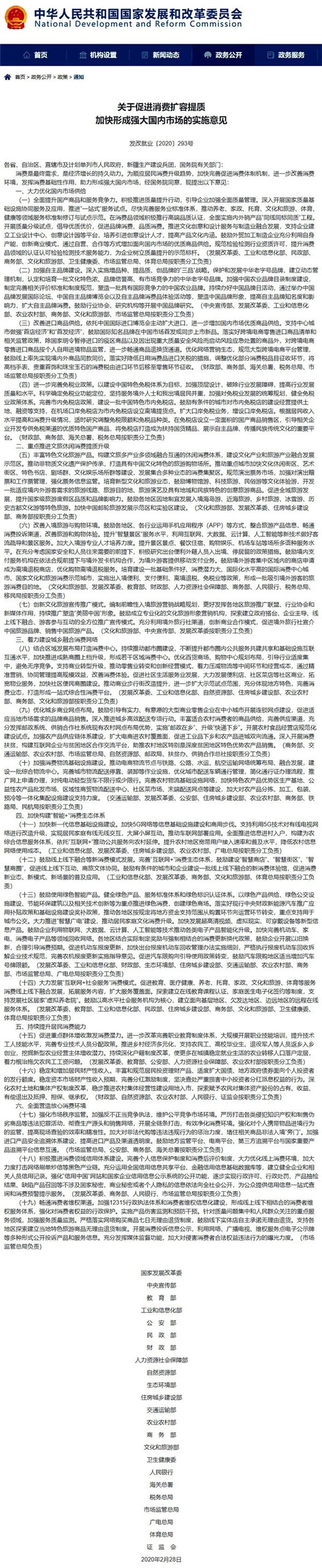近日,国家发展改革委、工信部、中宣部、财政部、商务部等二十三个部门联合印发《关于促进消费扩容提质加快形成强大国内市场的实施意见》(以下简称《实施意见》)。