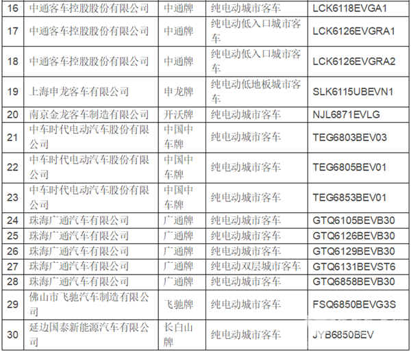 值得一提的是,30款新能源客车车型中,只有一款为插电式混合动力客车,其余29款均为纯电动客车。