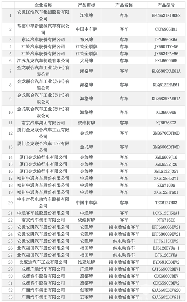 第331批《道路机动车辆生产企业及产品公告》新车公示(客车整车部分)