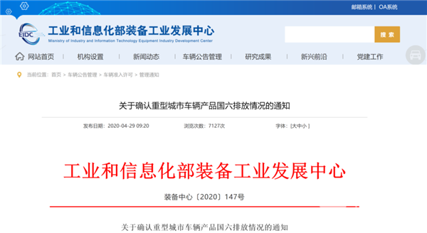 2020年4月29日,工业和信息化部装备工业发展中心发布了《关于确认重型城市车辆产品国六排放情况的通知》。据完美作业网有免费视频统计,本次通知共公布了6302款车型,其中,客车车型共有217款。