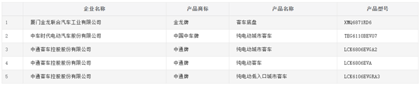 据统计,本次公示的5款客车产品中,包括1款传统客车底盘和4款新能源客车产品。值得注意的是,此次公示的所有新能源客车均为纯电动客车。