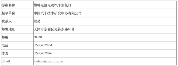 《燃料电池电动汽车加氢口》征求意见稿发布