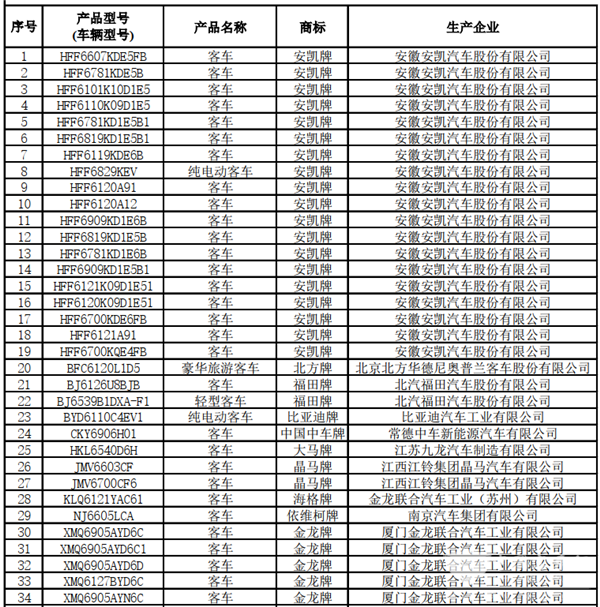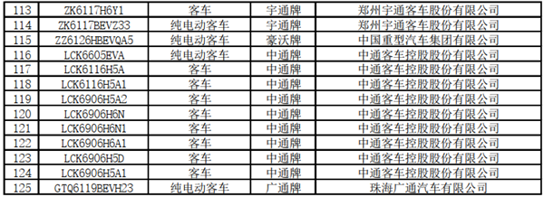 本次入选的125款客车产品分别来自宇通客车、比亚迪、金龙客车、金旅客车、苏州金龙、安凯客车、中通客车、中车电动等19家车企。