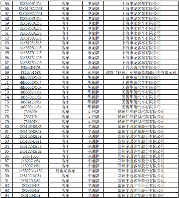 附:道路运输车辆达标车型表(第22批公示)(客车部分):