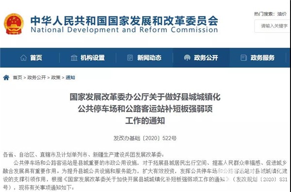 发改委:做好县城城镇化公共停车场和公路客运站补短板强弱项工作