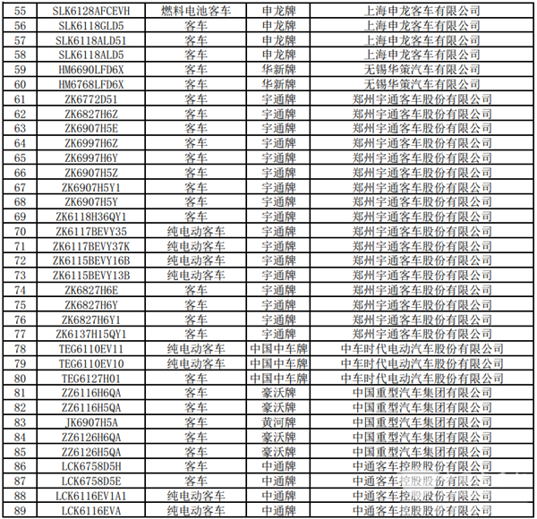 2020年8月6日,交通运输部公示了道路运输车辆达标车型表(第23批),本批达标车型共包括客车89款,其中包括74款传统客车,13款纯电动客车和2款燃料电池客车。