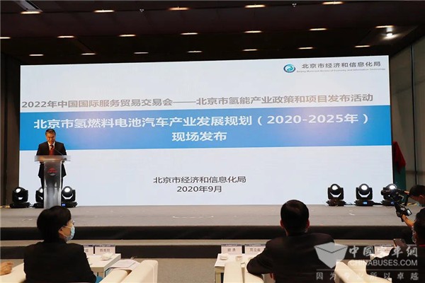 2020年9月8日,在2020年中国国际服务贸易交易会上,北京市经济和信息化局与北京市大兴区人民政府联合举办北京市氢能产业政策和项目发布活动专场,北京市经济和信息化局副局长姜广智现场发布《北京市氢燃料电池汽车产业发展规划(2020-2025年)》。