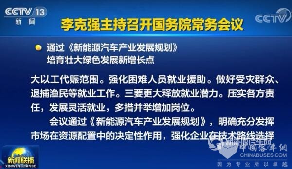 会议指出,适应产业升级趋势和绿色消费新需求,会议通过《新能源汽车产业发展规划》,明确充分发挥市场在资源配置中的决定性作用,强化企业在技术路线选择等方面的主体地位,更好发挥政府在标准法规制定、质量安全监管等方面作用。引导新能源汽车产业有序发展,推动建立全国统一市场,提高产业集中度和市场竞争力。