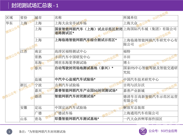 关于第七家是谁,编辑一直没有查到资料。只从交通部网站上看到,目前,完成山东滨莱高速26公里路段测试基地顶层设计和第一阶段施工图设计,年内完成测试基地26公里智能化改造工作,并申报交通运输部自动驾驶封闭测试基地认定。这或许正是第七家。5G行业应用公众号也曾整理过全国的测试场,50多家究竟是哪一家呢?