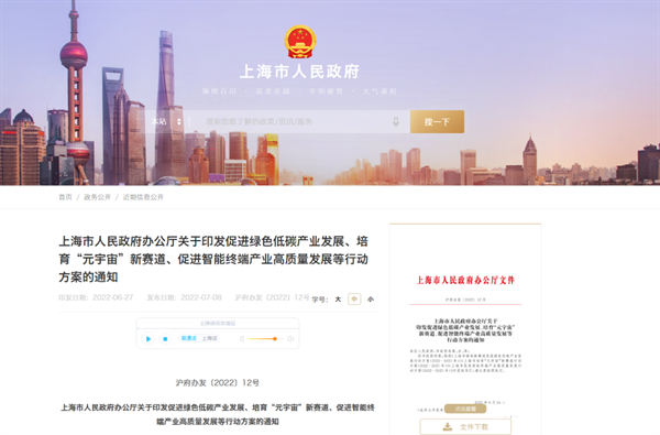 2022年7月8日,上海市人民政府发布了《上海市瞄准新赛道促进绿色低碳产业发展行动方案(2022—2025年)》(以下简称《方案》)。