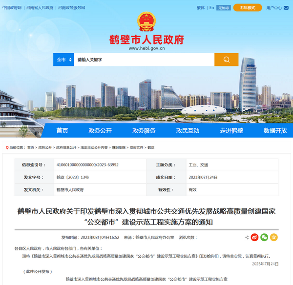 鹤壁市:深入贯彻城市公共交通优先发展战略实施方案发布
